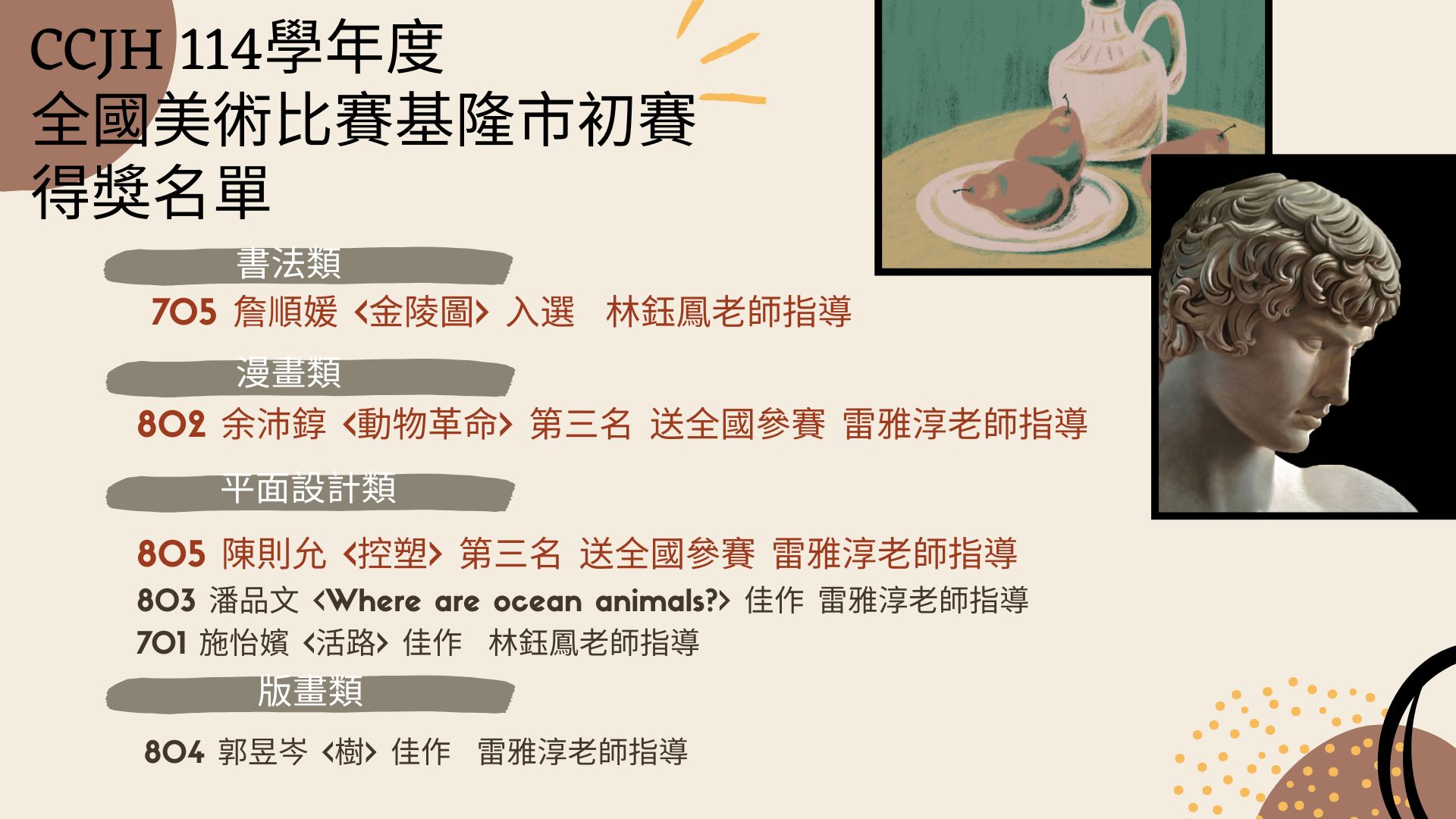 🎨✨ 賀!中正國中參加114年全國學生美術比賽—基隆市初賽 榮獲佳績! ✨🎨